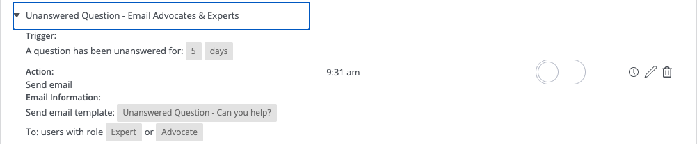 The really great thing here, is that for multi-product or segmented communities, you can have these emails and roles targeted to specific categories or sub-communities, meaning you can have experts in specific areas without sending them every unanswered question (we do not want to spam our advocates or super users)