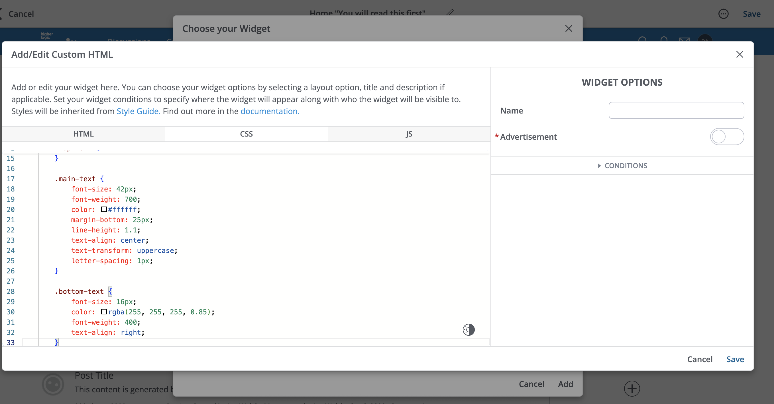 I then copy the CSS into a CustomHTML Widget on my site: