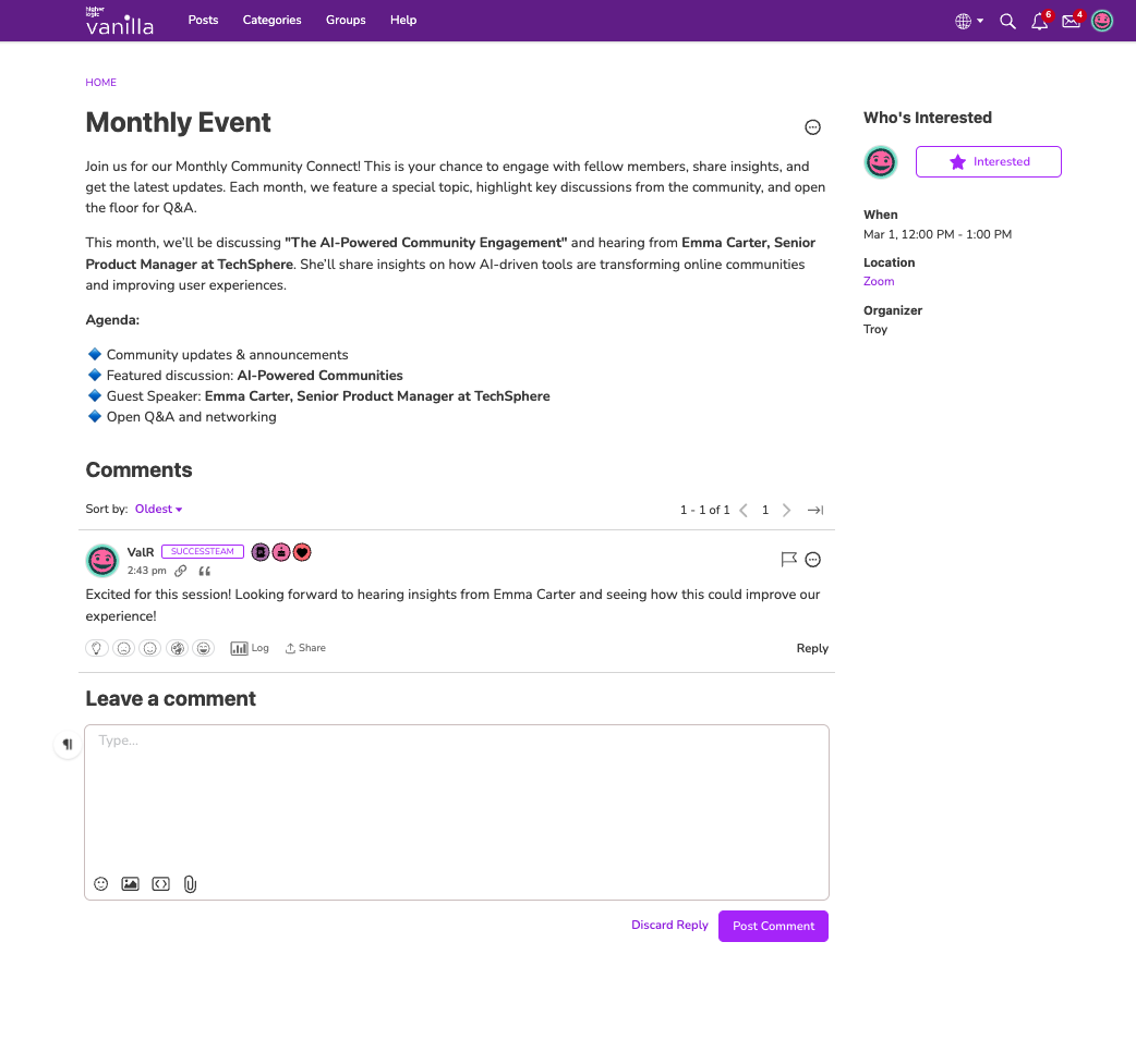 You asked, we listened! We’re thrilled to announce that you can now comment directly on Events. This new feature fosters engagement and allows for richer discussions around your events.