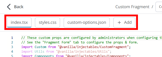 + Add | Create additional files to support your widget/fragment. | Add helper scripts, constants, or sample JSON data for preview testing. |