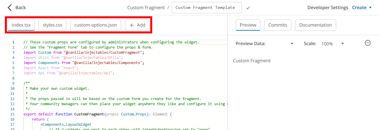 NOTE: Creating custom widgets/fragments is a complex and highly custom process. Because of this, the goal of this article is not to provide a creation step-by-step but to give you the foundational knowledge you can then use to create your own custom widgets/fragments.