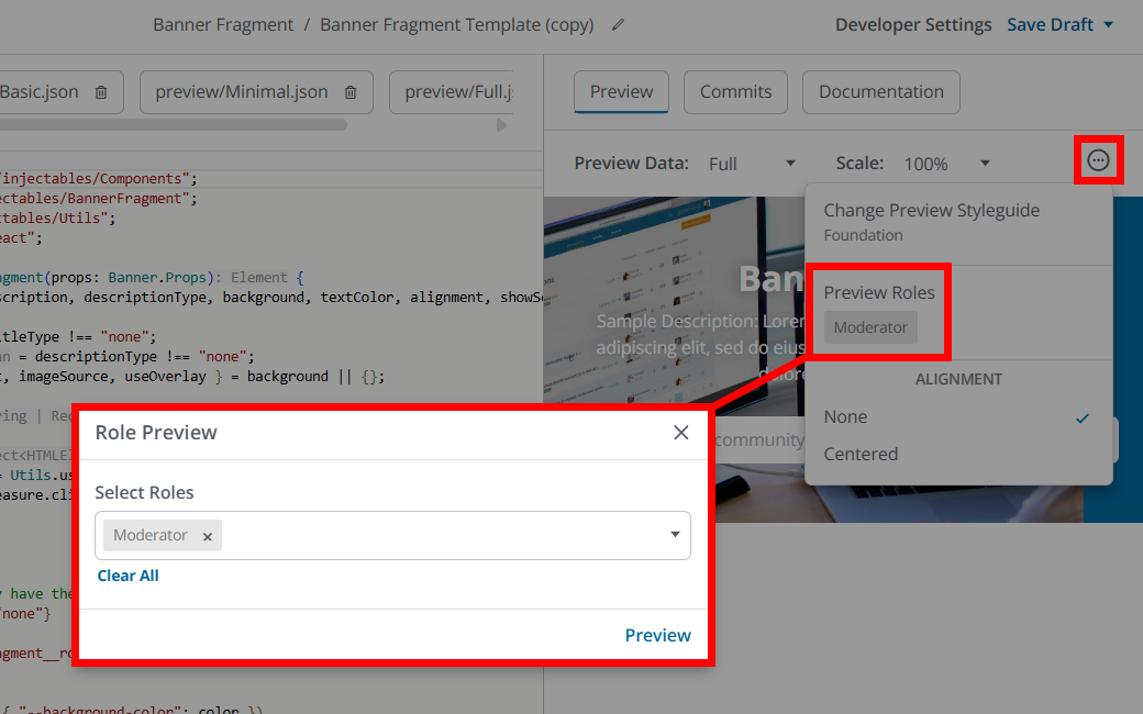 IMPORTANT: Always clear Role Preview when you’re done testing. Role Preview simulates selected roles and merges their permissions, which directly changes what renders and which code paths execute; if left on, you can misread widget visibility and permissions and commit changes based on a simulated state.