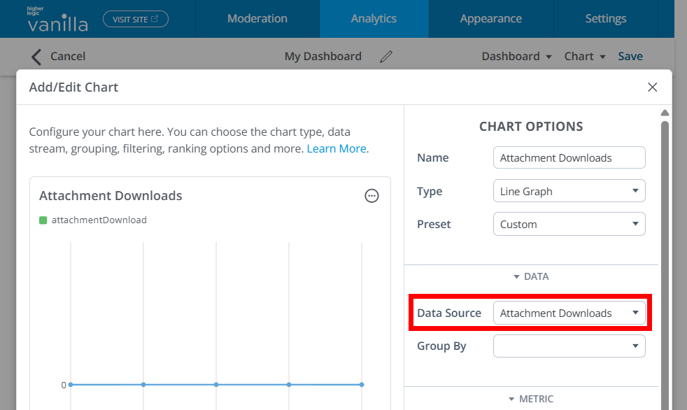 In this article, we're going to focus on the Attachment Downloads data source, which records each time a user downloads a file attachment from your Higher Logic Vanilla (Vanilla) community (e.g., from posts, comments, or knowledge base articles).