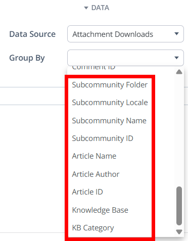 Use these metrics to group or filter activity by the context in which the file was posted—such as the category or knowledge base article it was attached to, or the subcommunity or discussion it belongs to. This helps track which areas of your community drive the most download engagement.